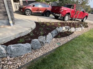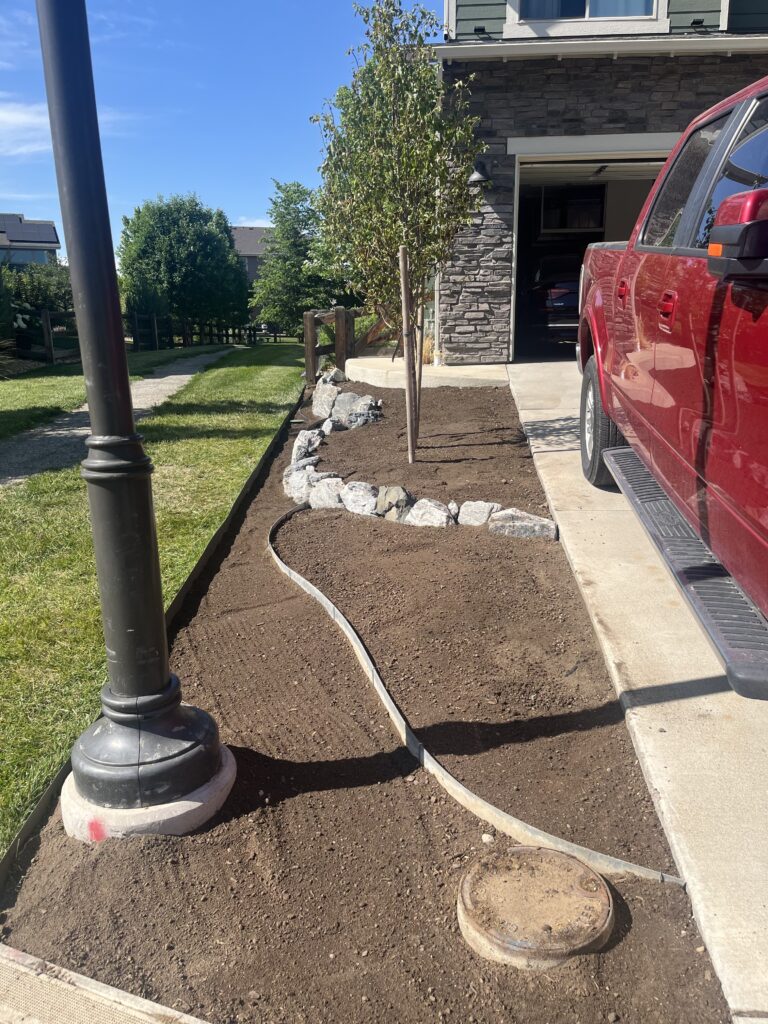 I love the look, and it will look even better once the plants get to full size. The hardest part was removing all the roots from the aspen trees that were cut down.
